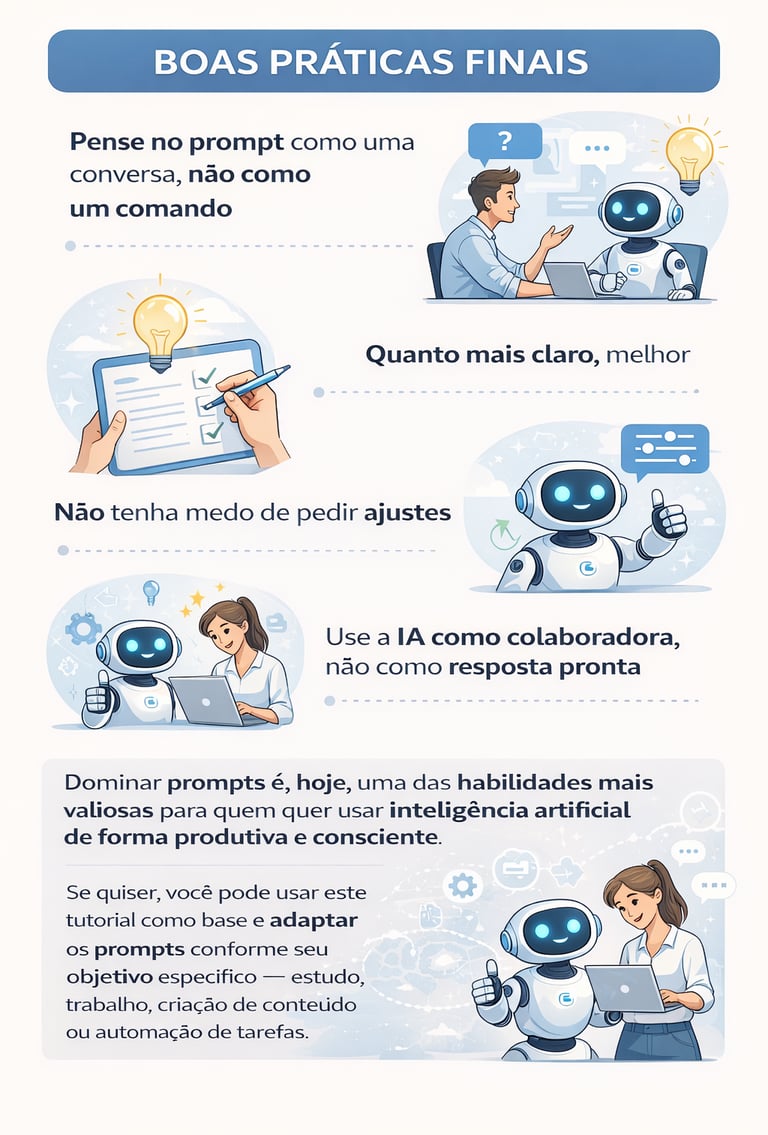 Se quiser, você pode usar este tutorial como base e adaptar os prompts conforme seu objetivo específico — estudo, trabalho, criação de conteúdo ou automação de tarefas.